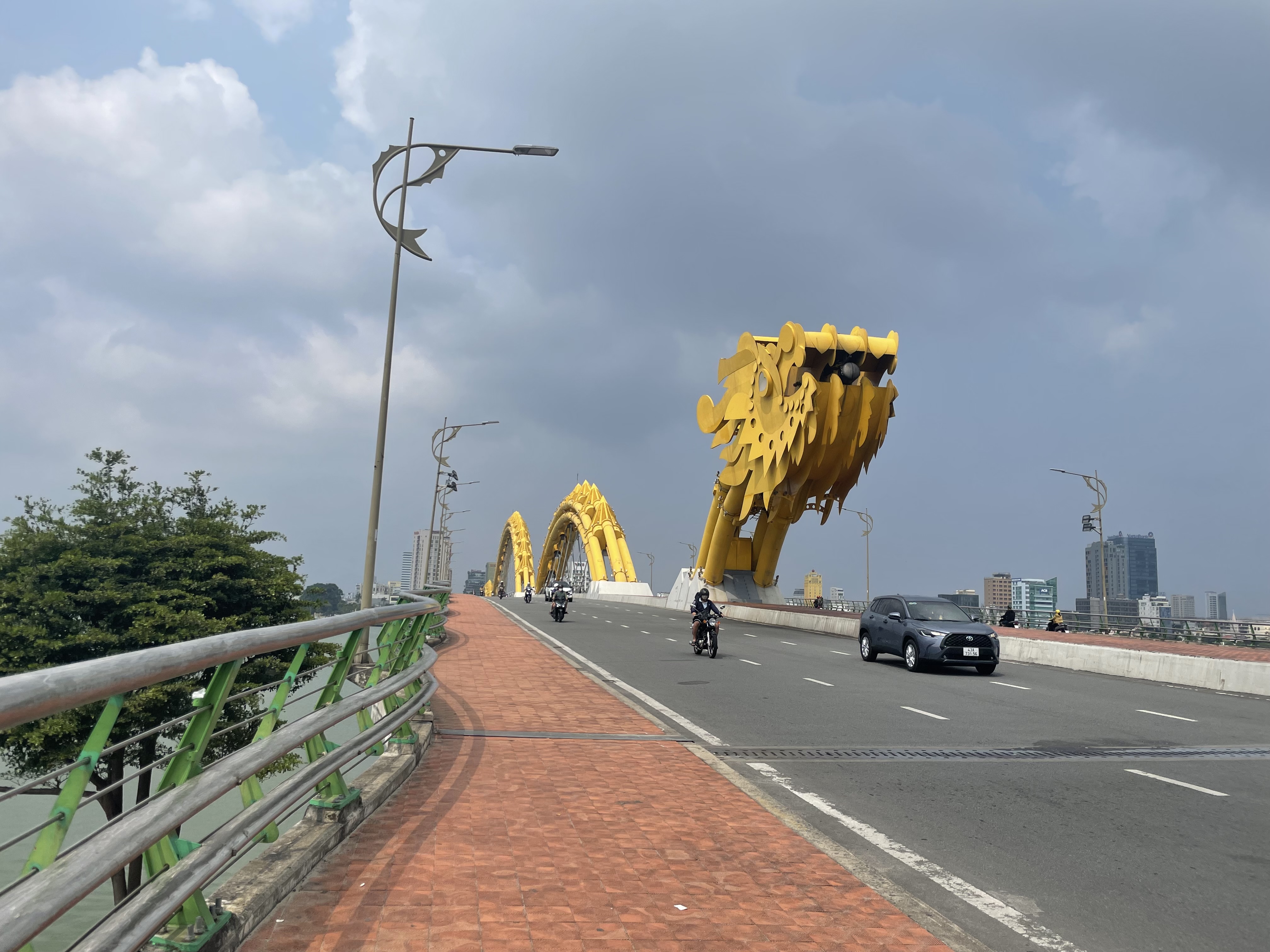 다리가 너덜너덜해질 때쯤 용의 다리를 다 건너 북적 저리는 오토바이들과 마주치게 되었어요. (앞으로 이런 모험은 아닌 거 같아요. 체력이 너무 소진되었습니다.) 베트남은 역시 이동수단으로 오토바이가 많다고 하던데 그 말을 여기서 체험합니다.