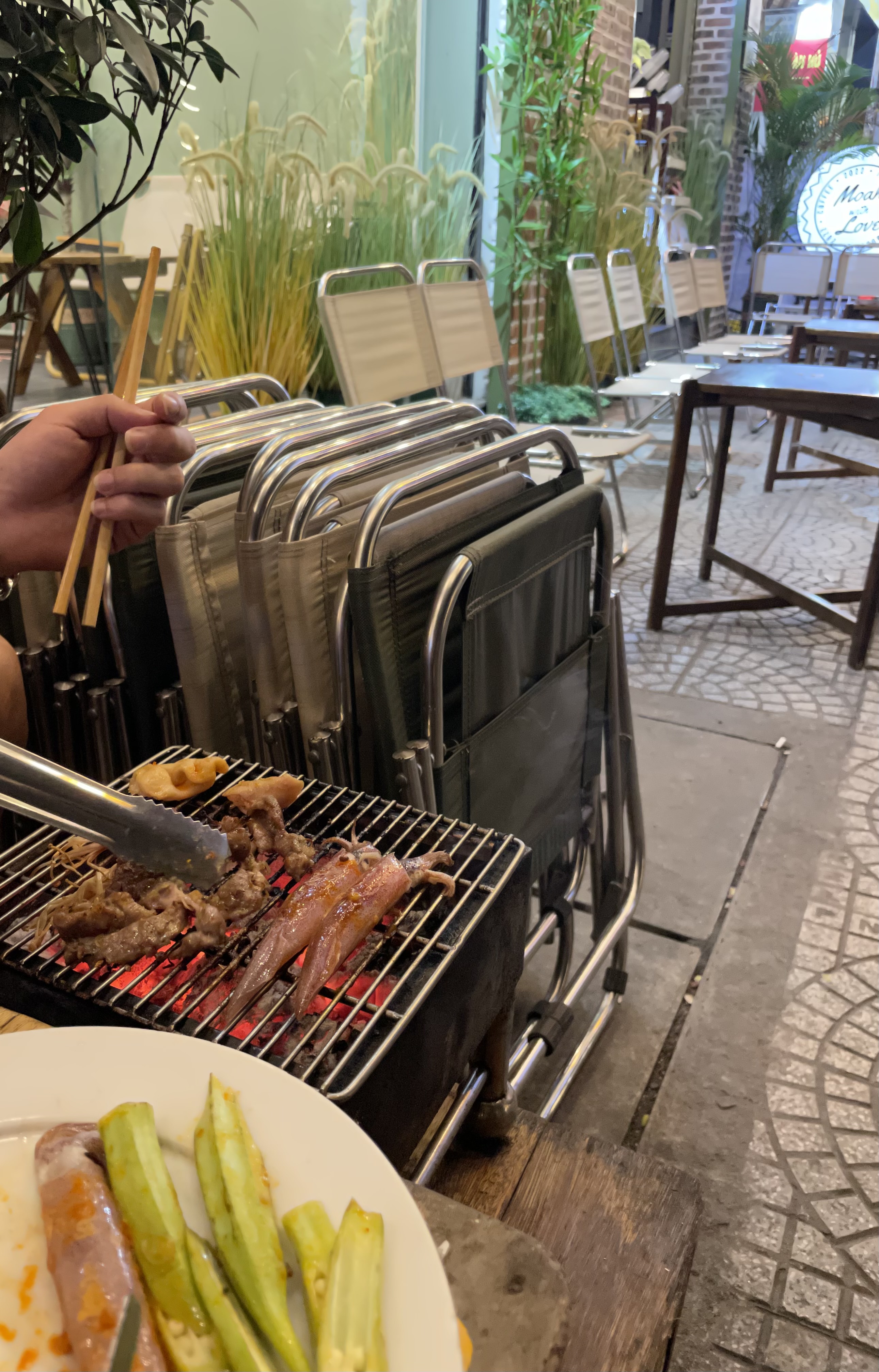 그래서 카지노(생각보다 한가롭지만 꼼꼼하게 ID 카드와 맵버쉽카드를 만들어 검사 후 진입했어요. 룰을 잘 모르는 사람은 재미를 모르겠더라고요.)만 잠깐 구경하고 한시장의 저희는 맛있는 거는 한번 더 가본집으로 남기 위해 어제 방문한 숯불구이 집으로 와서 다시 이번여행의 마지막 밤을 위하여 맛나게 먹었습니다.