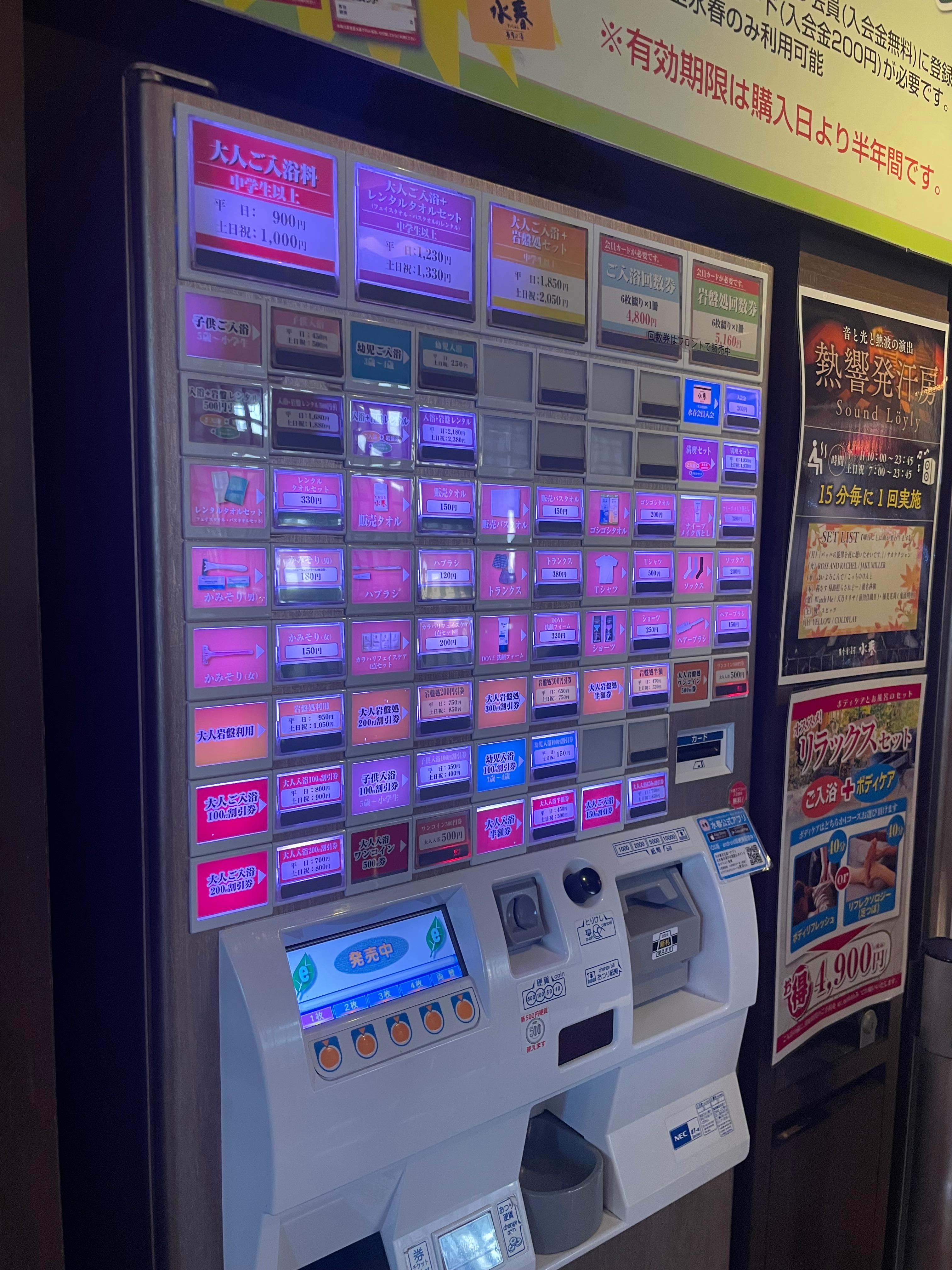 일본 온천하는 곳에 자판기에서 티셔츠까지 구매가 가능한 것이 신기하더라고요. 그리고 내부에는 샴푸, 린스, 바디워시까지 구비되어 있어요. 그러기에 그 외에 개인용품을 챙겨가면 될 거 같아요. 아 그리고 수건도 챙겨가야 하는 곳이에요. 그러기에 없으신 분들은 구매를 하시면 될 거 같아요!!